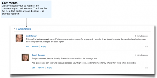 Die Kommentarfunktion ist eine der besten Features moderner Wikis. Man kann direkt in den Dialog mit dem Autor oder anderen an der Doku beitligten Personen einsteigen.